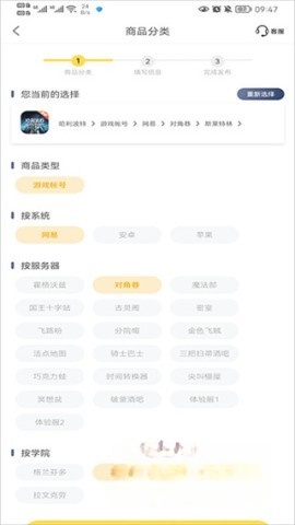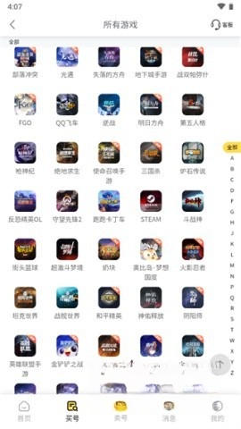 點擊對應的游戲交易選項,挑選自己所在的游戲來進行賬號的買賣操作。