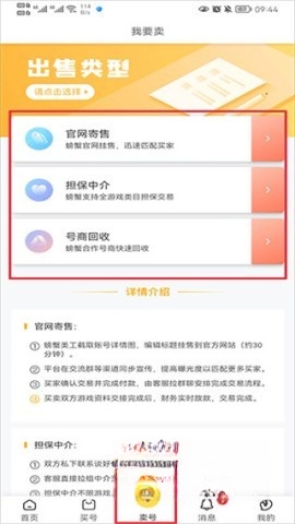 在“賣號”界面中選擇需要出售的賬號類型。
