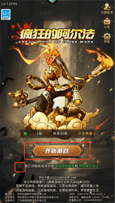 第一次進入游戲時,你會看到主界面,先勾選同意用戶協議,接著選擇服務器,就能正式開啟冒險之旅了。