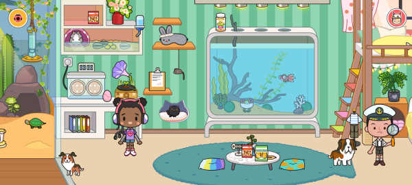 選擇任一場景進入后,能參與環境整理工作,像把地上的垃圾撿起來丟進垃圾桶,這樣既能讓空間變得更美觀,也能提高寵物的舒適度;在游戲里,差不多所有的物品和動物都可以進行拖動操作,從而增強玩家的沉浸感。