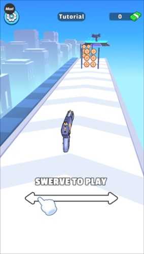 控制槍械左右滑動,點擊射擊擊碎前方出現的所有靶子與障礙物,這些障礙物代表金幣數量,擊破越多獲得獎勵越豐厚。