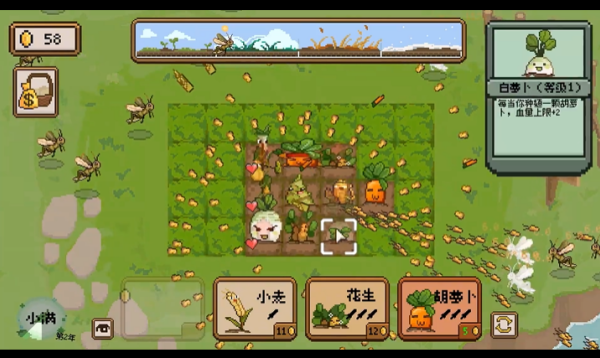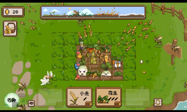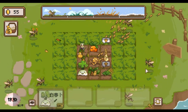 夏季要應對蟲群的小規(guī)模騷擾,借助植物技能進行清理,同時積累資源來升級農田。