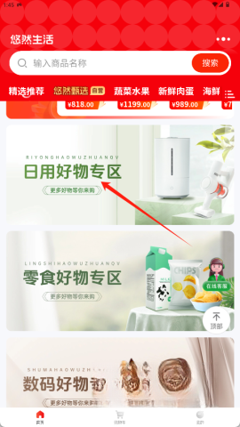 首先進(jìn)入首頁的“日用好物專區(qū)”,點(diǎn)擊“更多好物”按鈕以瀏覽商品列表。