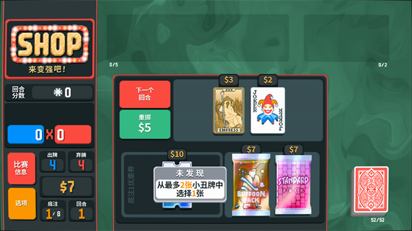 這邊建議跳過新手教程,這樣能少花兩枚金幣,之后就可以直接購買7塊的小丑卡牌和塔羅牌了。