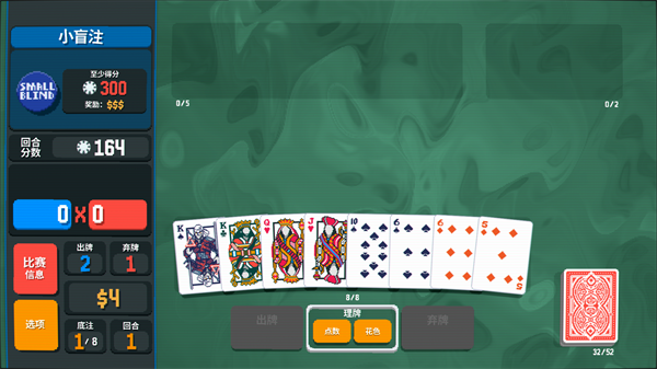 藍分的獲取方式是湊齊特定牌型(比如對子、同花),計算時只進行加法運算。