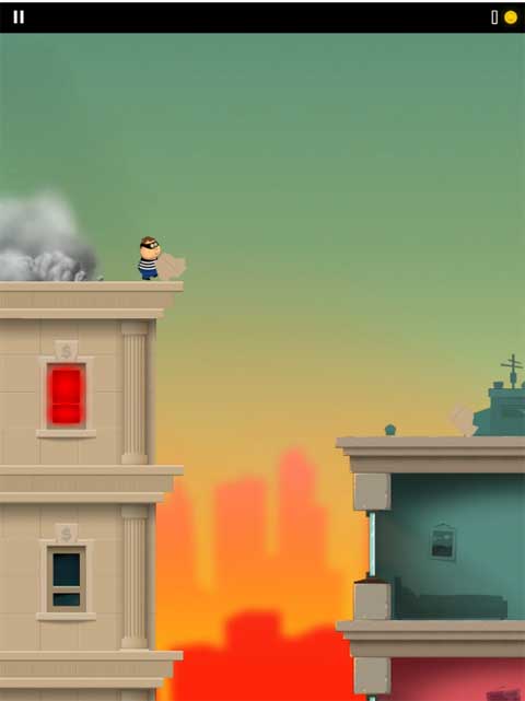游戲開局時,胖胖的老爸穿著小偷的服裝,從一棟高樓大廈里蹦出來,跳到了另一座城市。