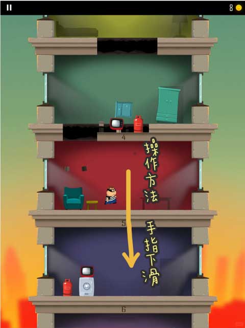 操作方式為用手指在屏幕上上下滑動,借助蹦跳動作沖破當前樓層,以此抵達下一層。