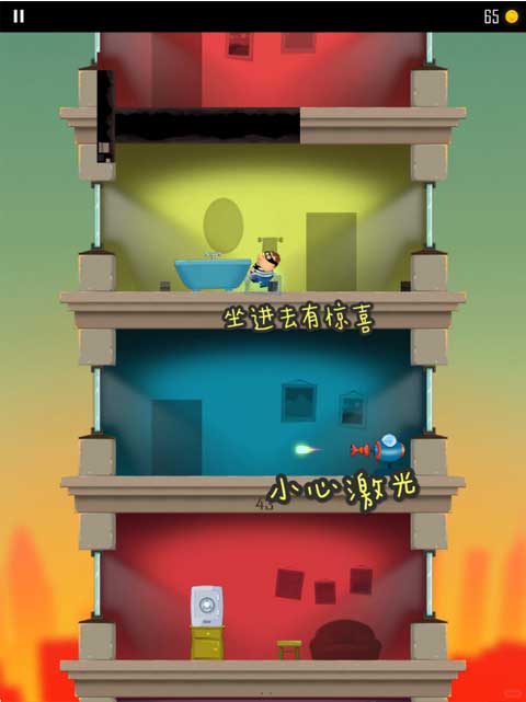 玩家跳進浴缸后會墜落好幾層樓,下落過程中要留意躲避激光的掃射。
