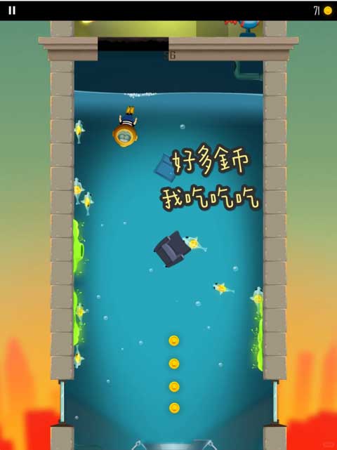 在這里,胖乎乎的老爸身著潛水服,不停地收集著大量的金幣,收集到的金幣越多,就能兌換更多的物品。