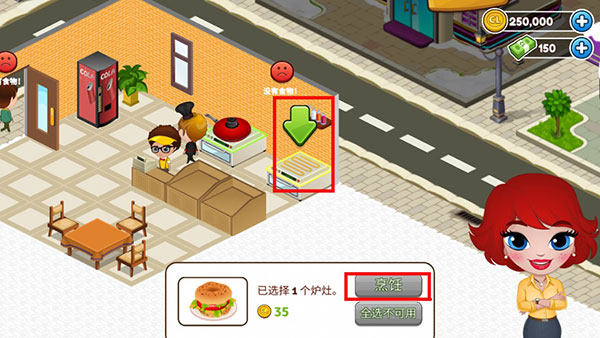 點(diǎn)擊空閑的爐灶,會(huì)彈出相應(yīng)的選項(xiàng),選擇【烹飪】。