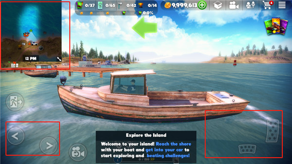 進入游戲后,玩家會身處一艘船上,可借助左側的按鍵操控方向,右側的按鍵則用于控制油門與剎車。