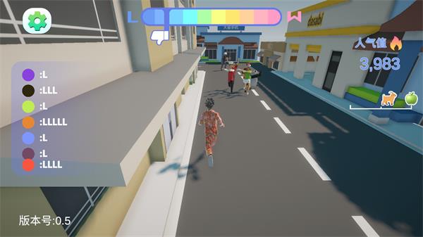 玩家操控甲亢哥在城市街道中穿梭,一邊行進一邊展示操作,同時還需要設法擺脫圍觀的群眾。