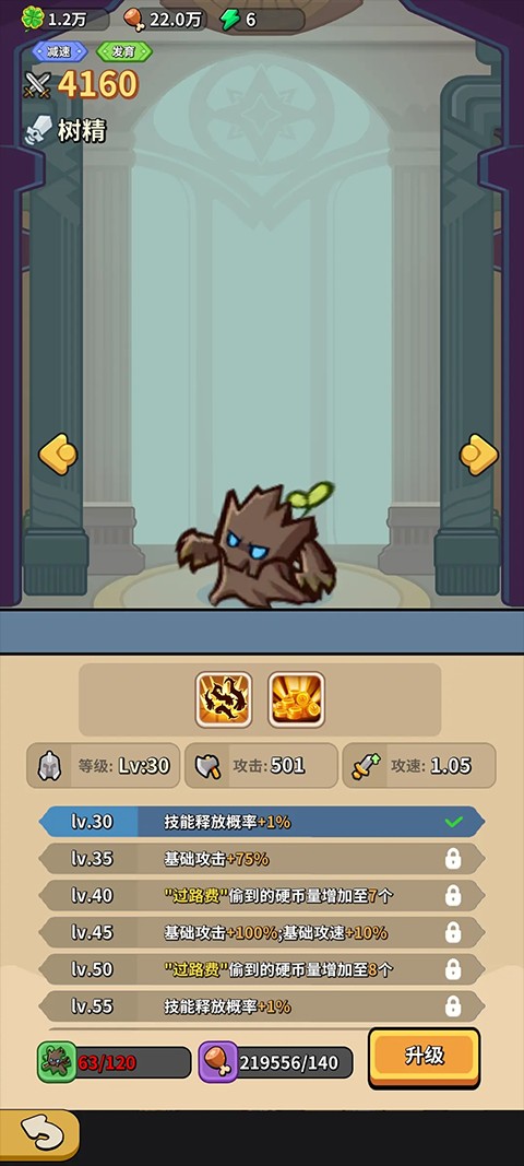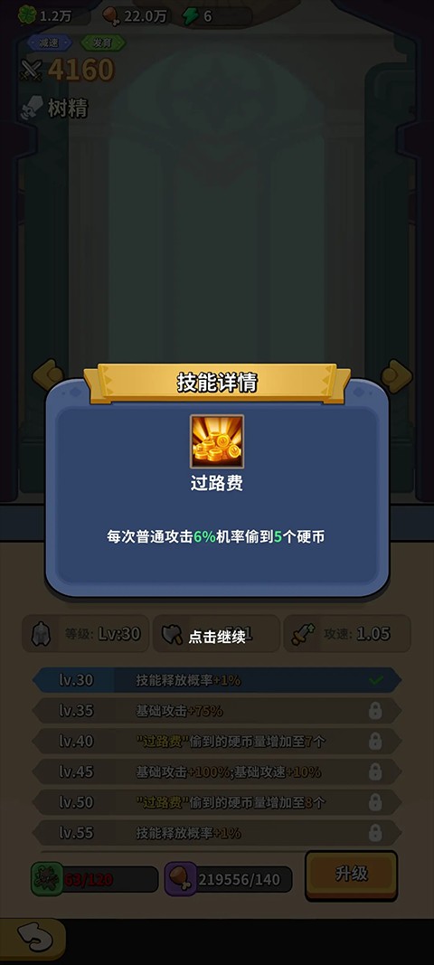 “樹精”的技能是每次普攻6%的幾率獲得5個銀幣。
