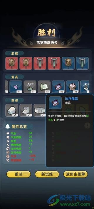 《我的仙術有點厲害》是一款休閑益智游戲,故事設定在修仙世界里。玩家扮演的主角已走到修仙之路的最后階段,必須通過冥界的考驗才能成就大道。因此,玩家需要進入冥界修煉,利用游戲中獲得的金幣、貨幣等資源,持續升級武器裝備、購買各類藥品,以此助力自己闖過重重難關,最終達成證道結局。在這個過程中,玩家要在各種困難的阻礙下不斷突破自我,制定不同的應對策略。