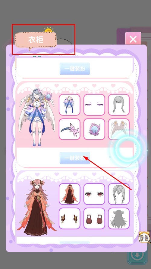 打開【衣柜】界面,選擇預設的裝扮方案,點擊【一鍵裝扮】按鈕即可快速完成換裝。