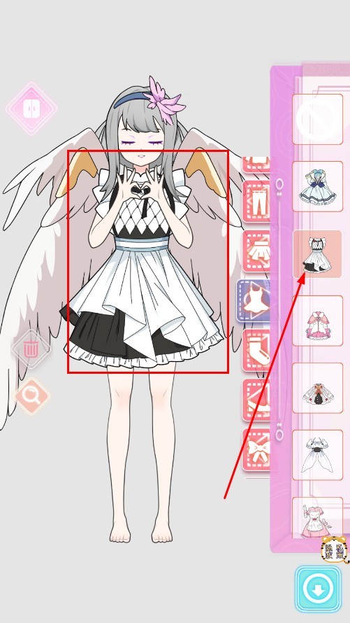 在換裝界面,從右側的列表中挑選連衣裙,給角色替換上身的服裝,從而塑造全新的外觀。