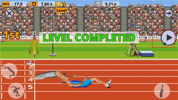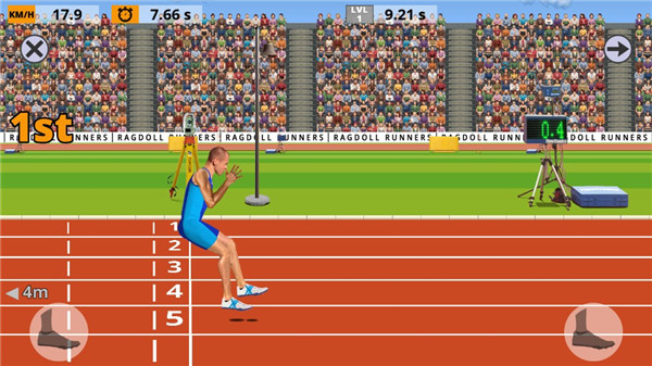 根據(jù)游戲里的障礙物分布或運(yùn)動節(jié)奏來有規(guī)律地按鍵,同時在物理引擎的作用下把控好方向。游戲主要操控運(yùn)動員的兩條腿,每條腿對應(yīng)一個獨(dú)立按鈕。