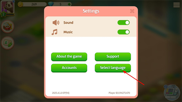 之后點(diǎn)擊“select language”選項(xiàng)以切換語(yǔ)言。
