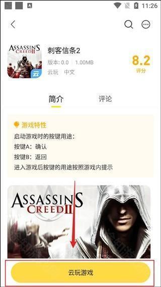 進入云游戲板塊后,挑選你喜愛的游戲,例如選擇【刺客信條】。