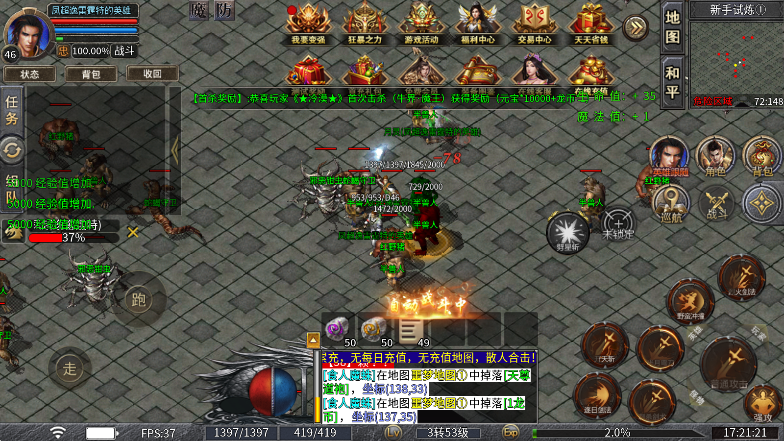 本服不氪金也能玩到頂級,所有裝備都要靠打怪獲取,小怪也能掉落頂級裝備,運氣好掉一件就能直接變強。