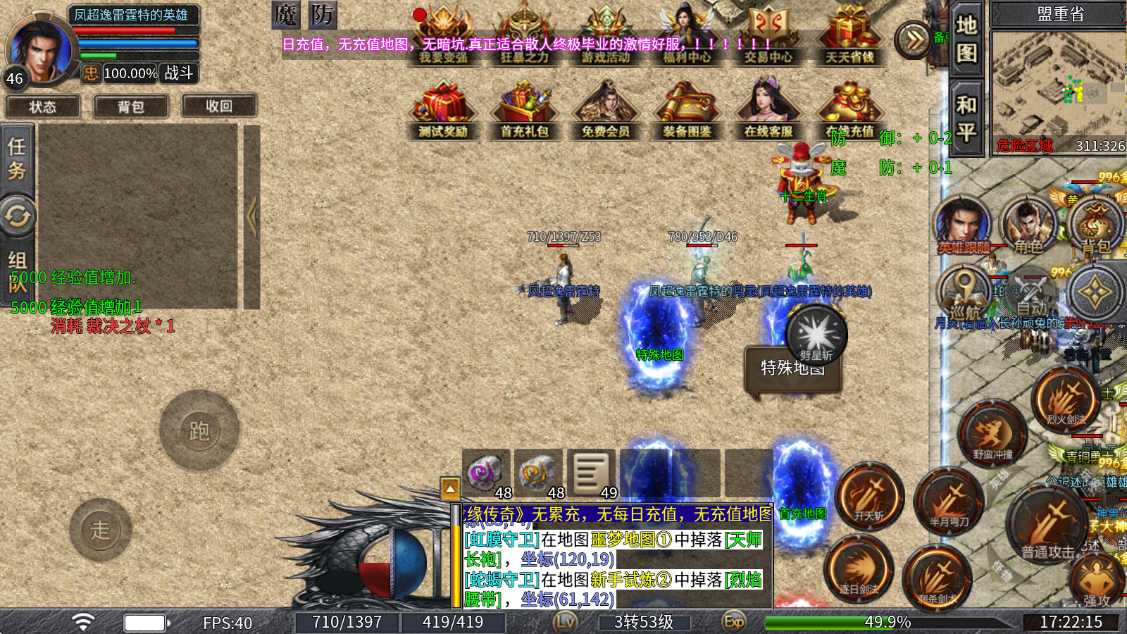 上線直接進地圖殺怪,獲得材料元寶合成特殊裝備。