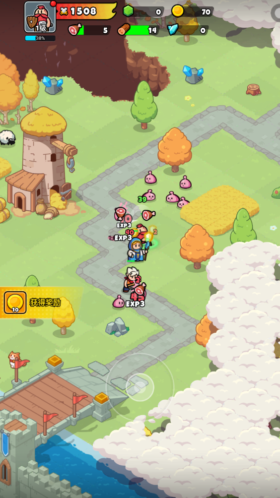 進(jìn)入游戲后,借助屏幕下方的虛擬搖桿就能操控角色移動,當(dāng)靠近怪物時便會觸發(fā)戰(zhàn)斗。