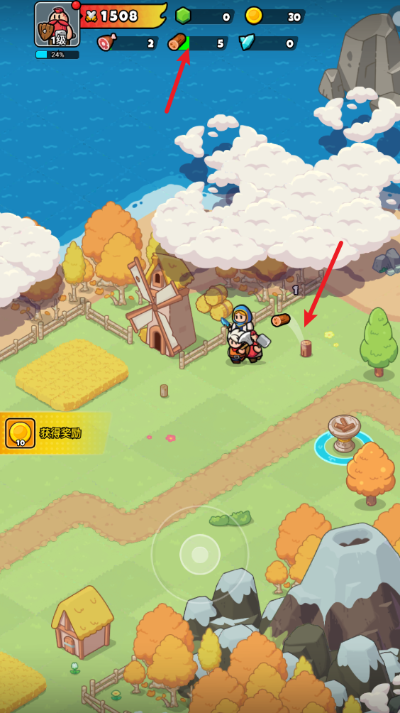 靠近樹木后可以進(jìn)行砍伐,能夠獲得樹木資源。
