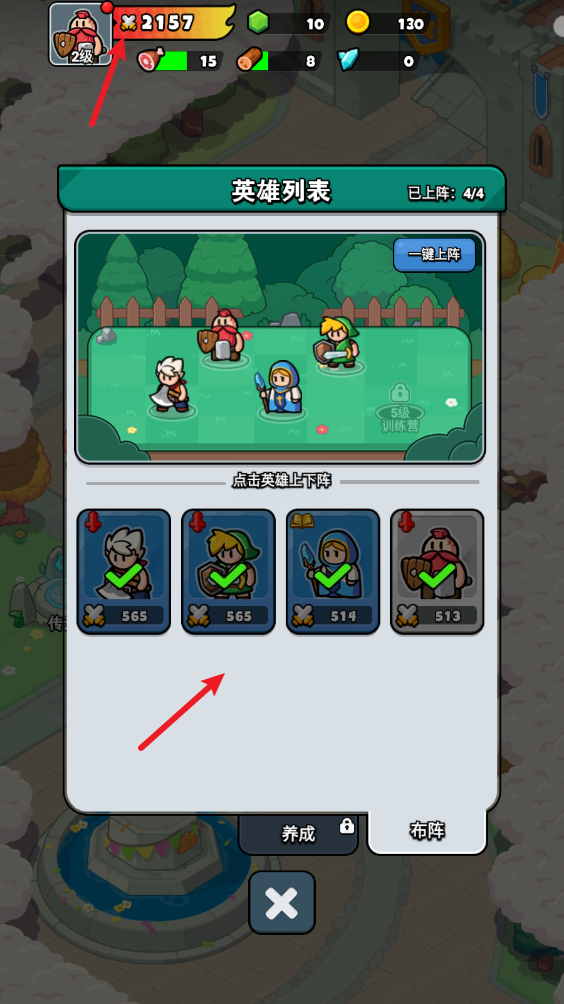 戰(zhàn)力值指的是所有上陣英雄戰(zhàn)力加起來的總和,能讓你比較直觀地知曉自己的戰(zhàn)力水準(zhǔn)。不過由于英雄強(qiáng)度存在差異,即便戰(zhàn)力數(shù)值相同,強(qiáng)力英雄組成的陣容實(shí)力也會更強(qiáng)。(上陣英雄最多為10位,前期需在訓(xùn)練營中使用紅礦石解鎖更多上陣名額)