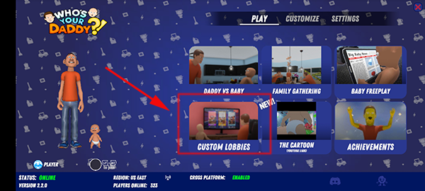 進(jìn)入游戲后,點(diǎn)擊下方的custom lobbies,即可進(jìn)入多人聯(lián)機(jī)界面。