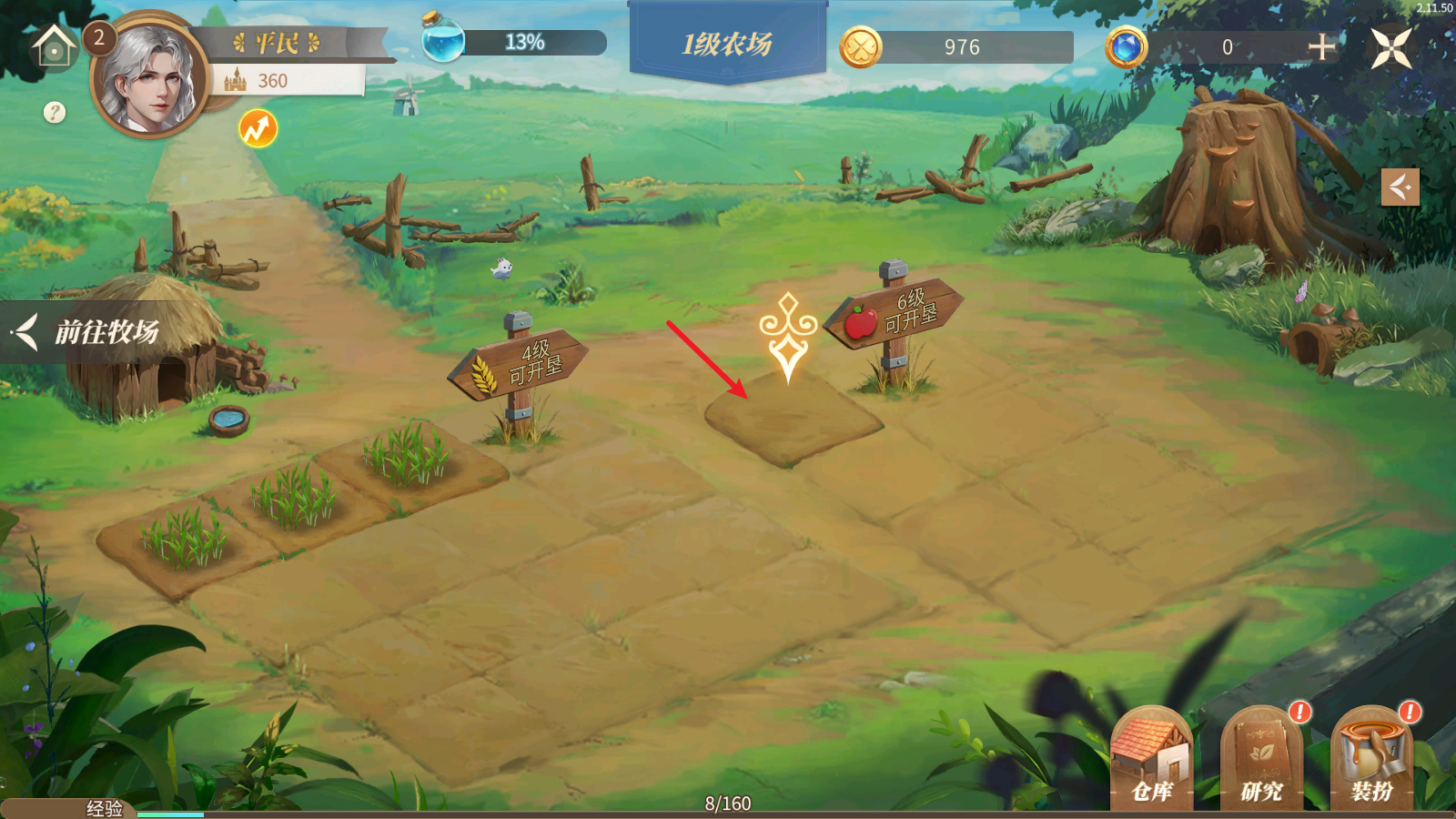 進入游戲后,我們首先來到農場,在這里點擊空地就能開始種植。