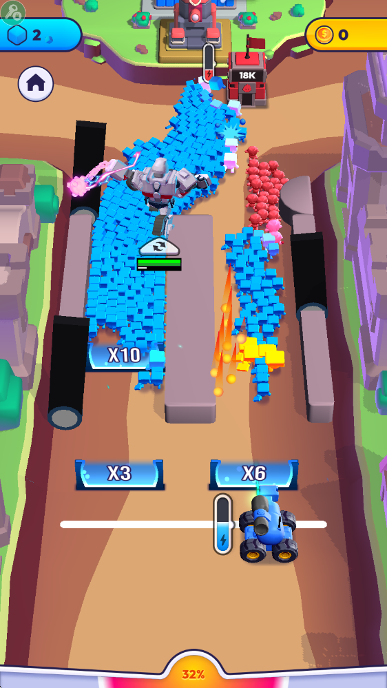 炮彈人沖沖沖(Mob Control)是一款休閑有趣又解壓的橡皮人競技游戲。游戲操作簡單,無需復雜技巧,只需點擊就能帶來極致爽感!玩家操控大炮發射橡皮人戰斗,積攢能量可召喚海盜船長、變形金剛等奇特英雄,擊敗敵人還能積蓄能量,釋放威力強大的終極技能消滅敵人,占領基地獲勝!此外,通過不斷匹配戰斗收集資源,還能逐步建設自己的大本營!