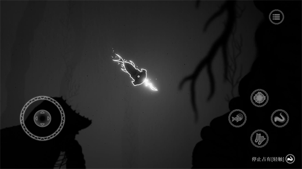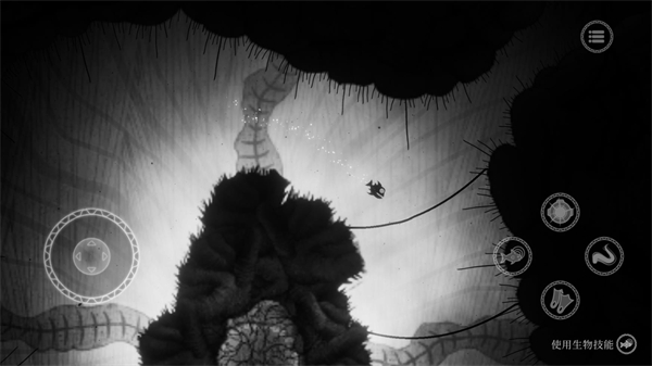 正式開始后,左側(cè)區(qū)域用于操控角色移動(dòng);右側(cè)的觸手圖標(biāo)對(duì)應(yīng)技能釋放,魚形圖標(biāo)可啟用相應(yīng)海洋生物的能力,頭盔圖標(biāo)是探照燈功能,腳蹼圖標(biāo)則用于加速。