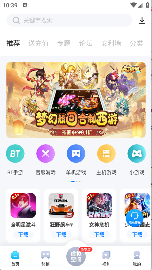 進入到首頁為用戶推薦了很多的游戲資源。
