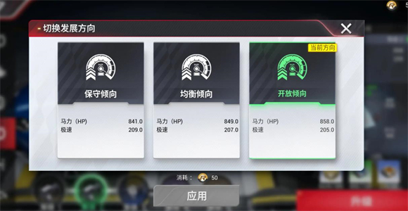 極速調整:降低漂移連貫性,減弱1-100km/h區間的加速表現,提升最大速度數值以及101-200km/h區間的加速能力