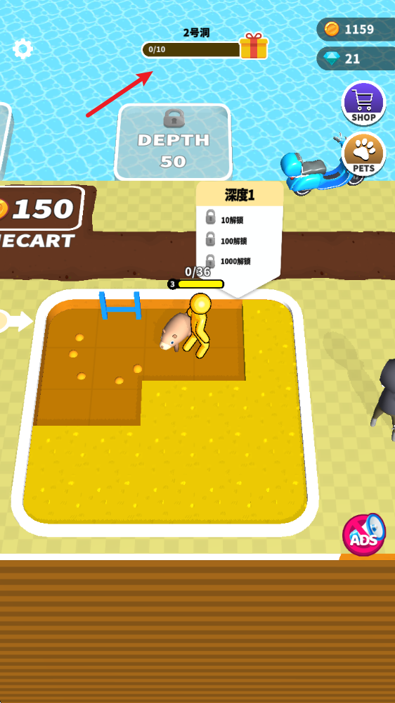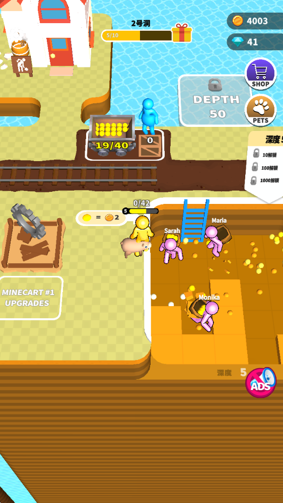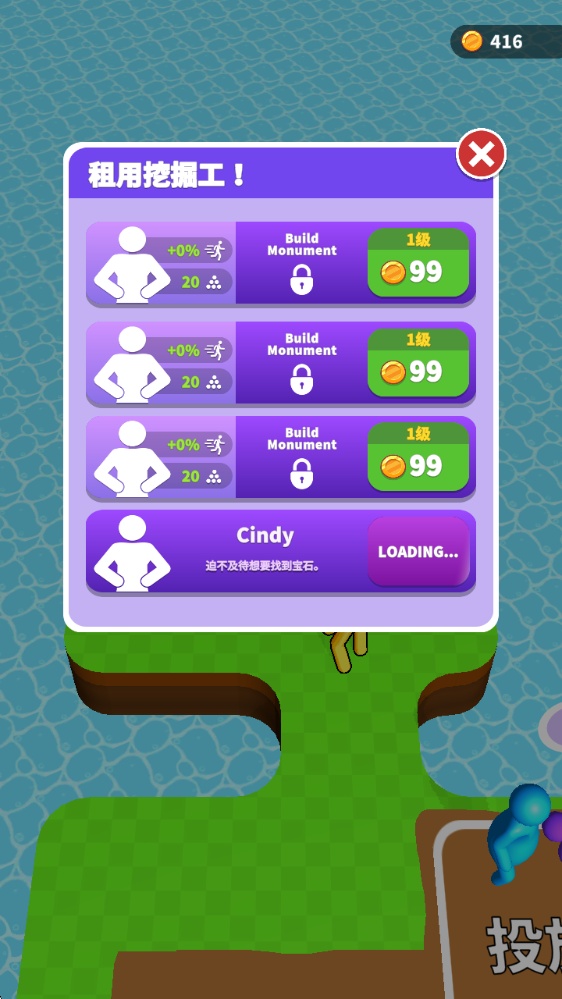 當你解鎖小鎮后,還能雇傭工人幫你挖土。這些工人會自動開展挖掘工作,并且把挖到的資源換成金幣。