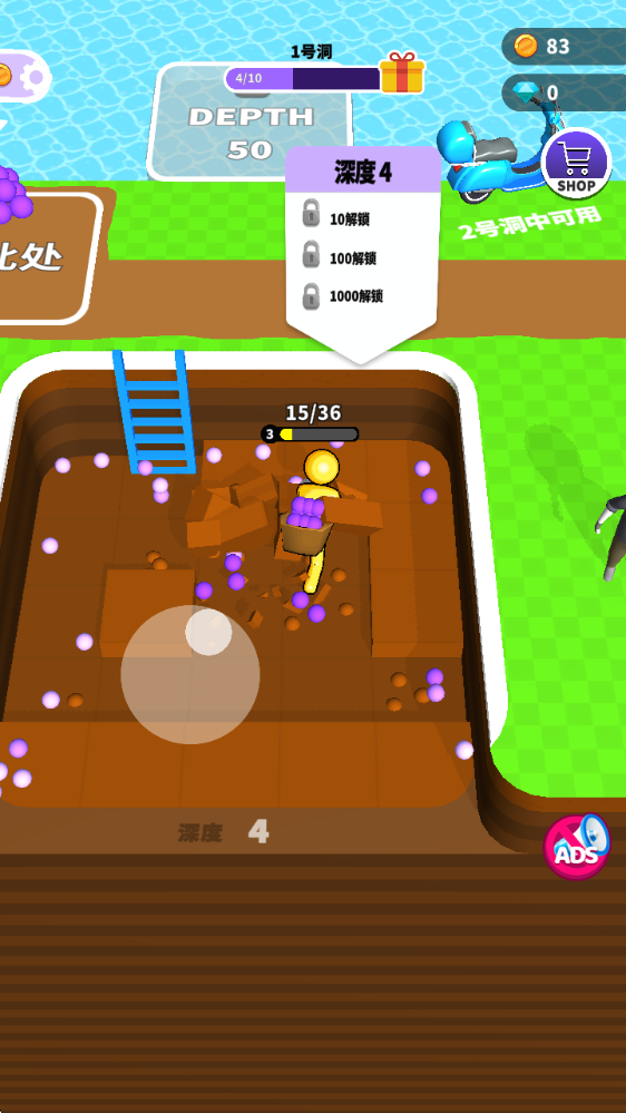 看誰挖的深,以挖掘地洞為主題的動作經營類。在游戲中,玩家將會扮演一名掘地者,不斷的去挖掘地面來提升自己的等級,同時還可以收集地洞中的各種礦石,以此來換取金幣,有了金幣之后即可招募員工提高挖掘效率,如此往復的不斷開采更多地洞,賺取源源不斷的財富!游戲中提供了數十個不同價值的礦源,將會隨著挖掘的深入慢慢的解鎖,為你帶來更多的收益!