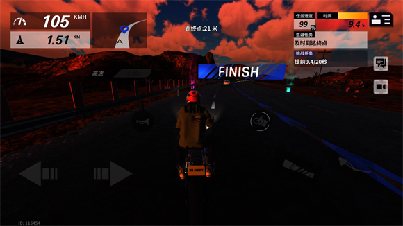 駕駛摩托在規定時間內抵達終點就可以完成比賽。