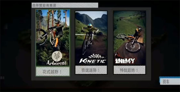 在主界面點擊“騎車”選項,接著選擇“山地車公園”,就能進入地圖選擇界面開啟競速模式;這個山地車公園內包含了豐富多樣的地圖可供游玩。