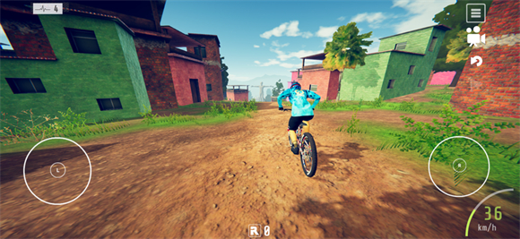 騎行:按住綠色的的區域可以加速,按住底部的紅色區域可以剎車,左搖桿控制方向,上下滑動左搖桿可以前俯或后仰。