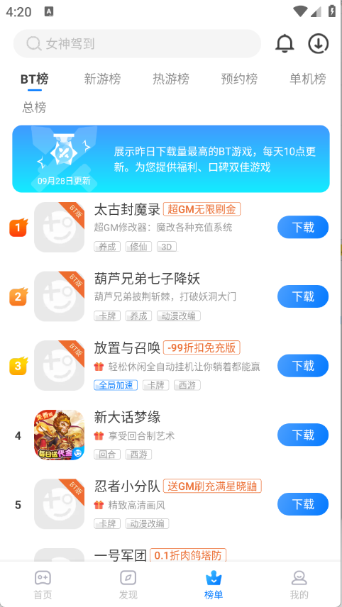榜單根據(jù)當前熱度將游戲進行了詳細的歸類。