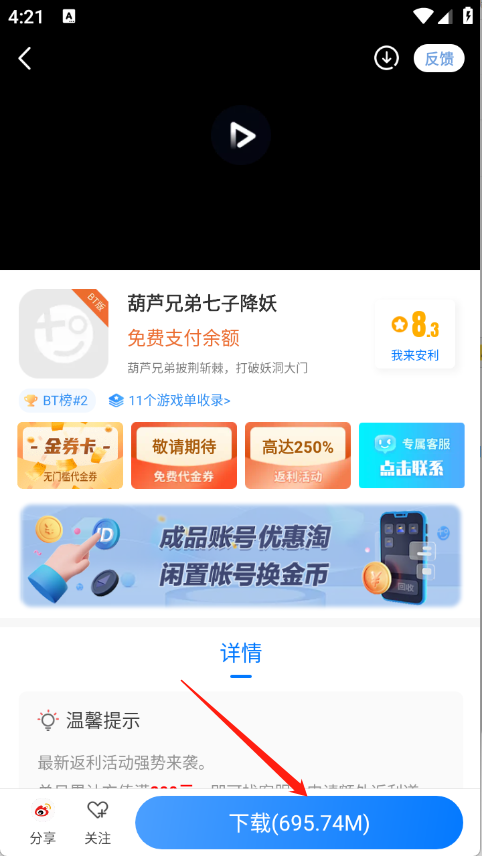 進入游戲界面,會看到擁有詳情和評論等兩個板塊。