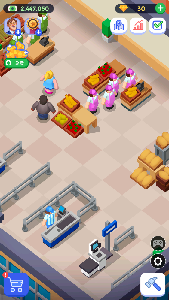 隨著財富的持續積累,我們能夠解鎖更多商品區域,聘用更多員工,提升整體經營效率,從而獲取更多利潤。