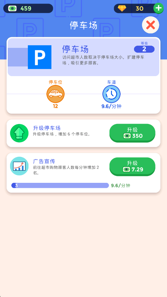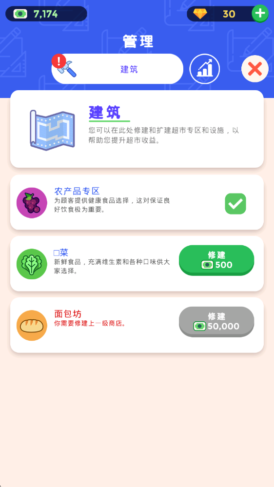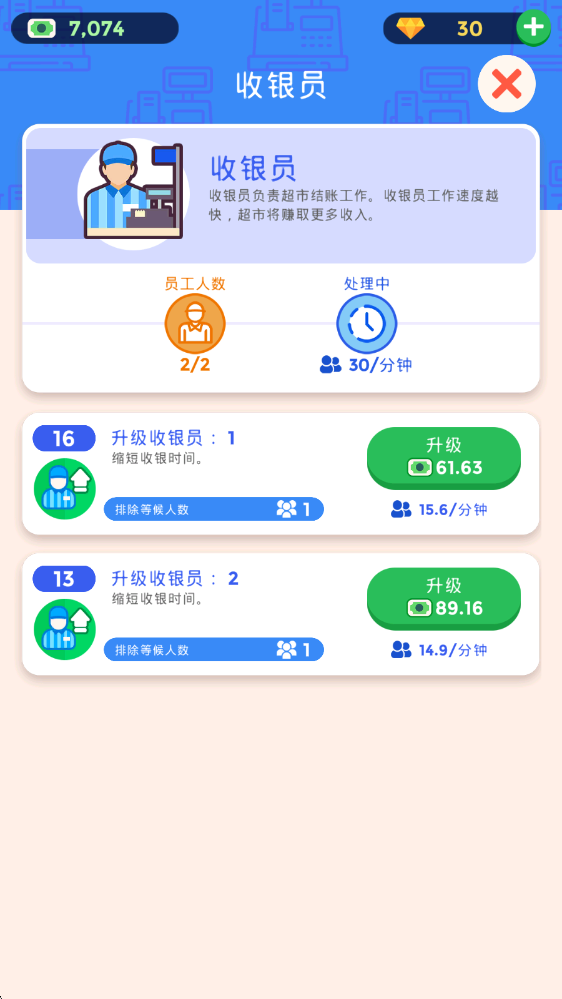 點擊對應區域就能完成升級,像收銀臺升級后可以提高收銀效率。