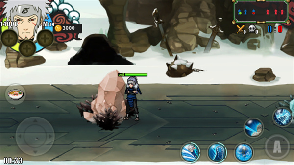 這樣就能進入關卡挑戰,左邊是虛擬按鍵,右邊是各種技能,每個技能都有冷卻時間。