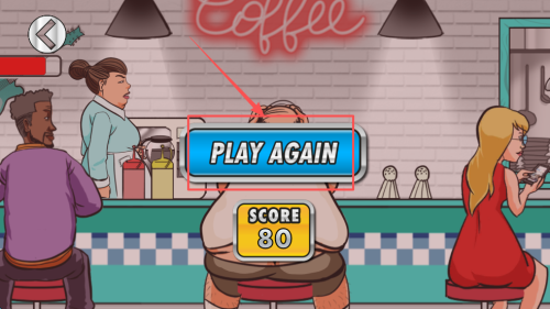 最后,若游戲結(jié)束,可點擊“PLAY AGAIN”按鈕重新開啟游戲或進(jìn)入下一關(guān)。