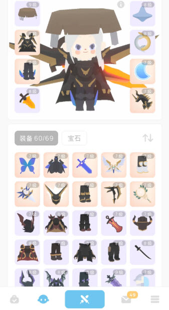 武器熔巖劍,飾品陀螺,戒指銜尾蛇。
