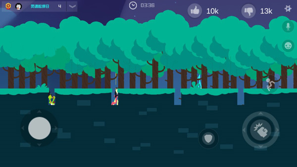 左下角的虛擬搖桿可操控角色移動,右側則設有跳躍、攻擊、防御等按鍵。
