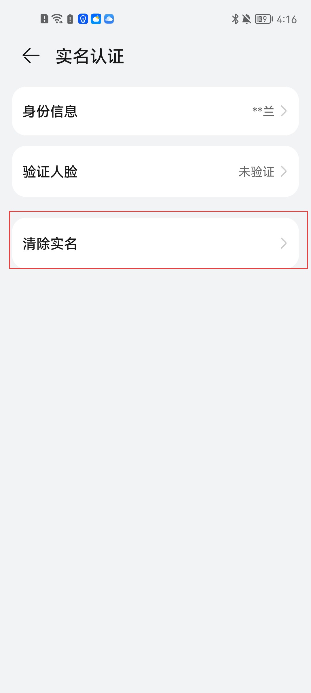 切換至新頁(yè)面之后,點(diǎn)擊清除實(shí)名這一選項(xiàng)。