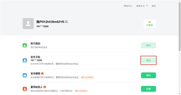 這里我們需要找到安全手機(jī)并點(diǎn)擊右邊的修改;