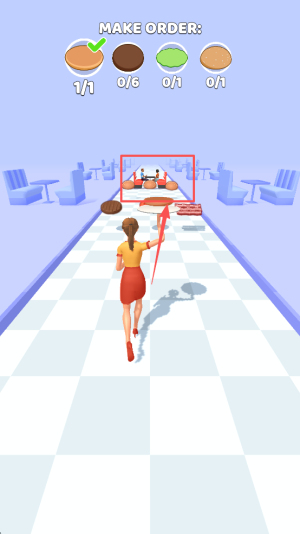 體驗在放松與挑戰(zhàn)間取得平衡:基礎(chǔ)跑酷玩法適合日常解壓;按顧客需求制作漢堡則帶有輕度挑戰(zhàn),讓“娛樂體驗”與“創(chuàng)意滿足”二者兼得。